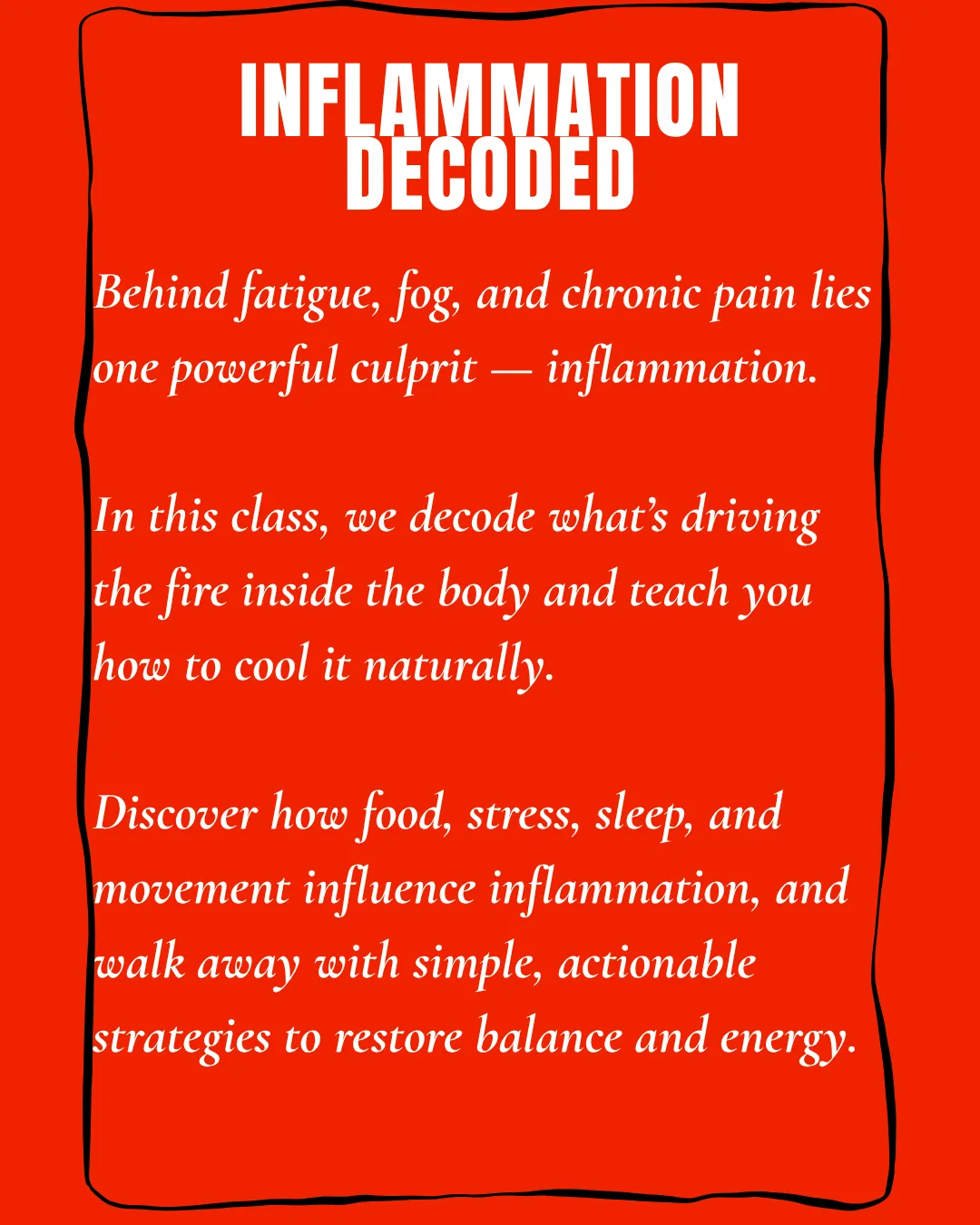 From decoding chronic inflammation to resetting the way we think about pain, these classes are about equipping our community with real answers and real support, without the medical jargon.